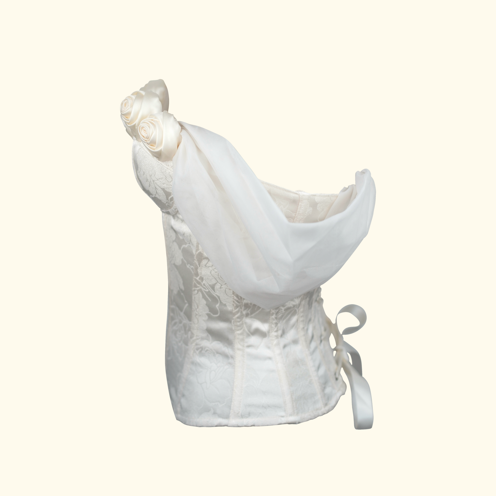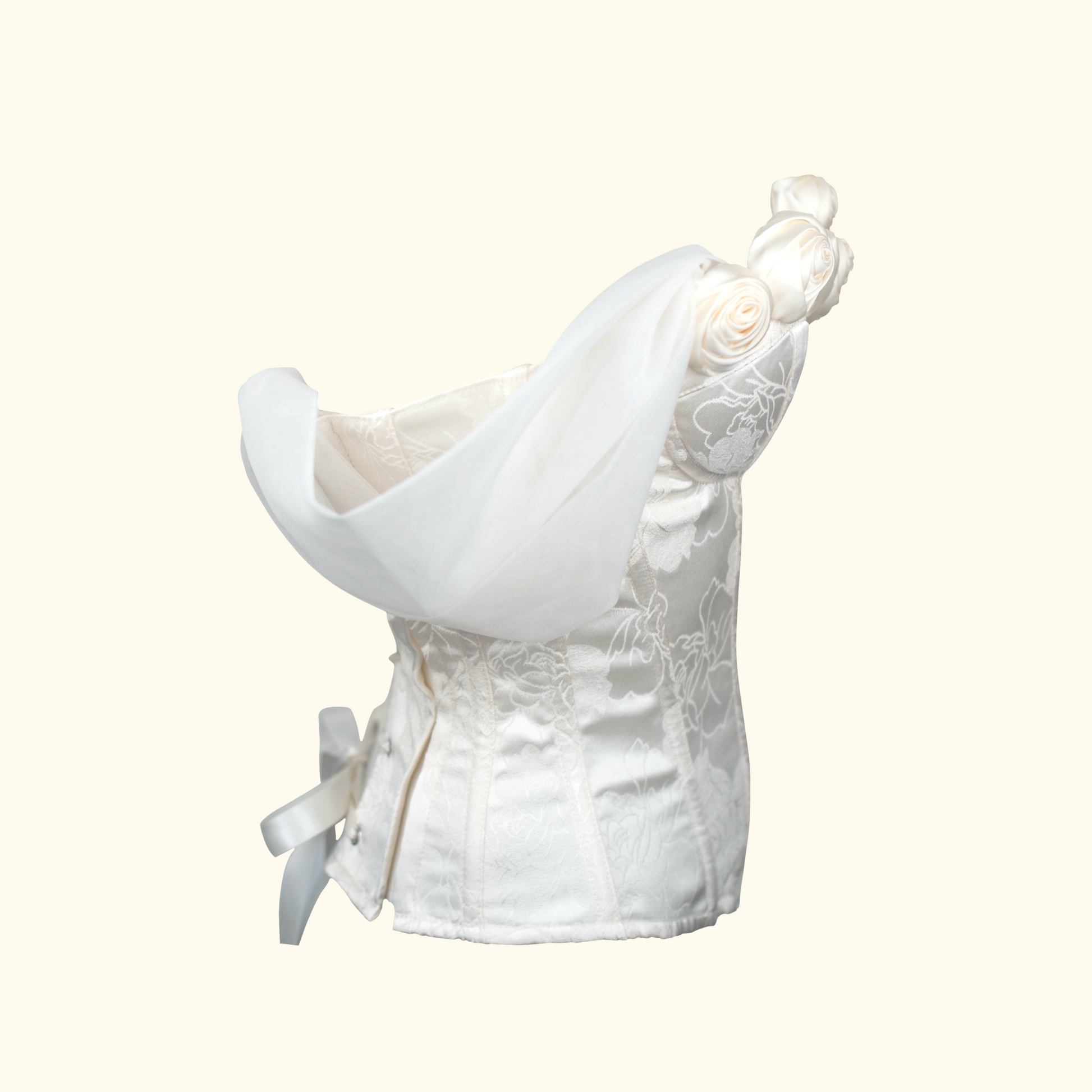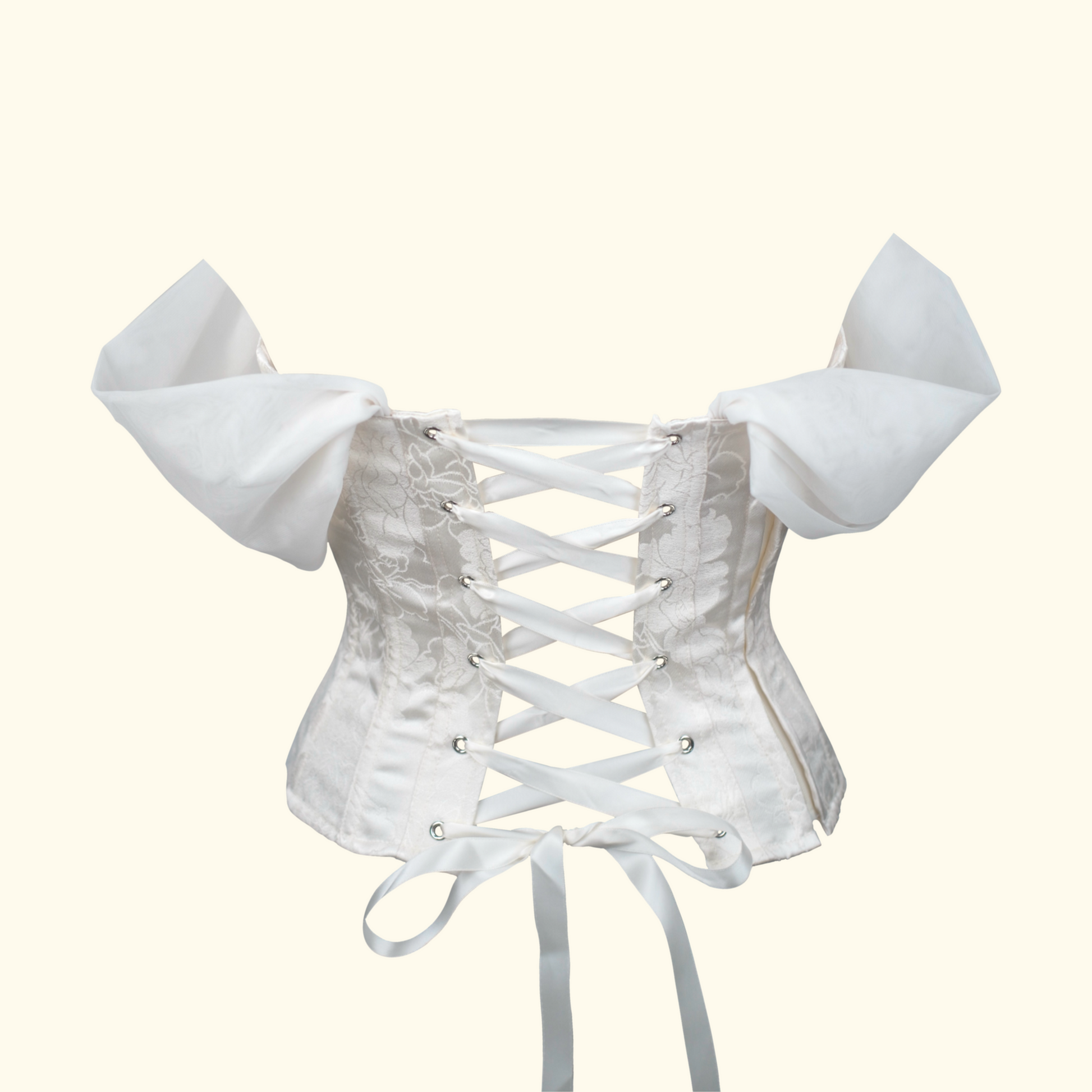 The soft off-white satin feels incredibly gentle against the skin, providing a breathable and comfortable wear even on warmer days. The boning offers subtle, unobtrusive support.