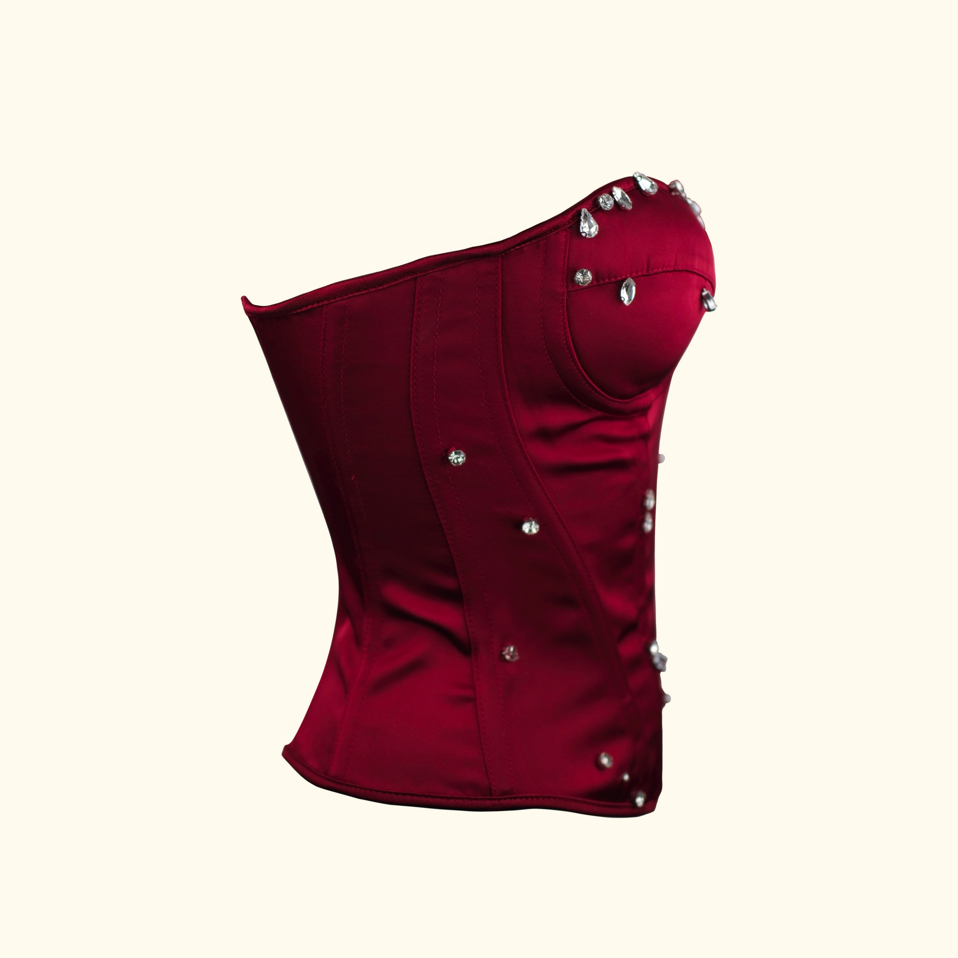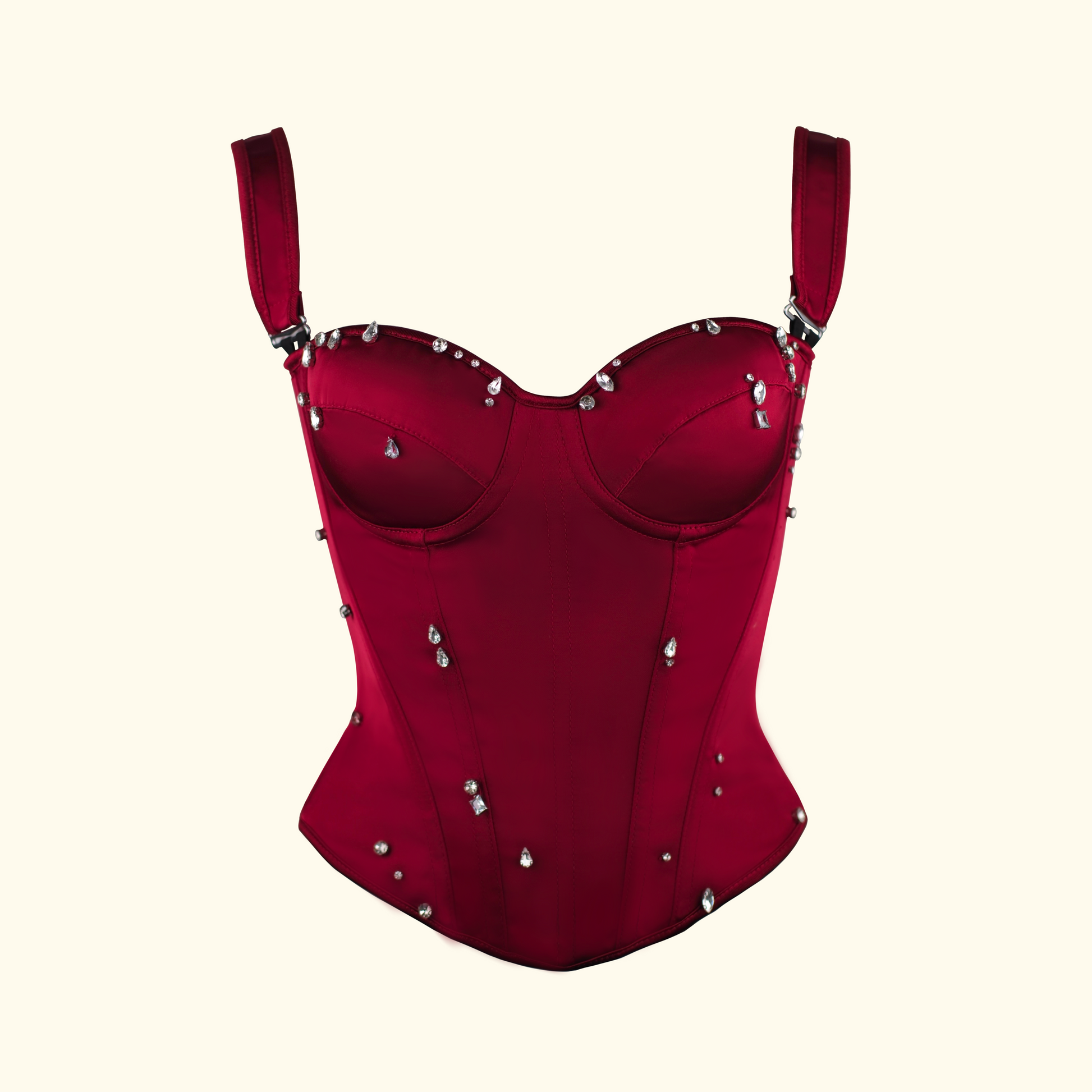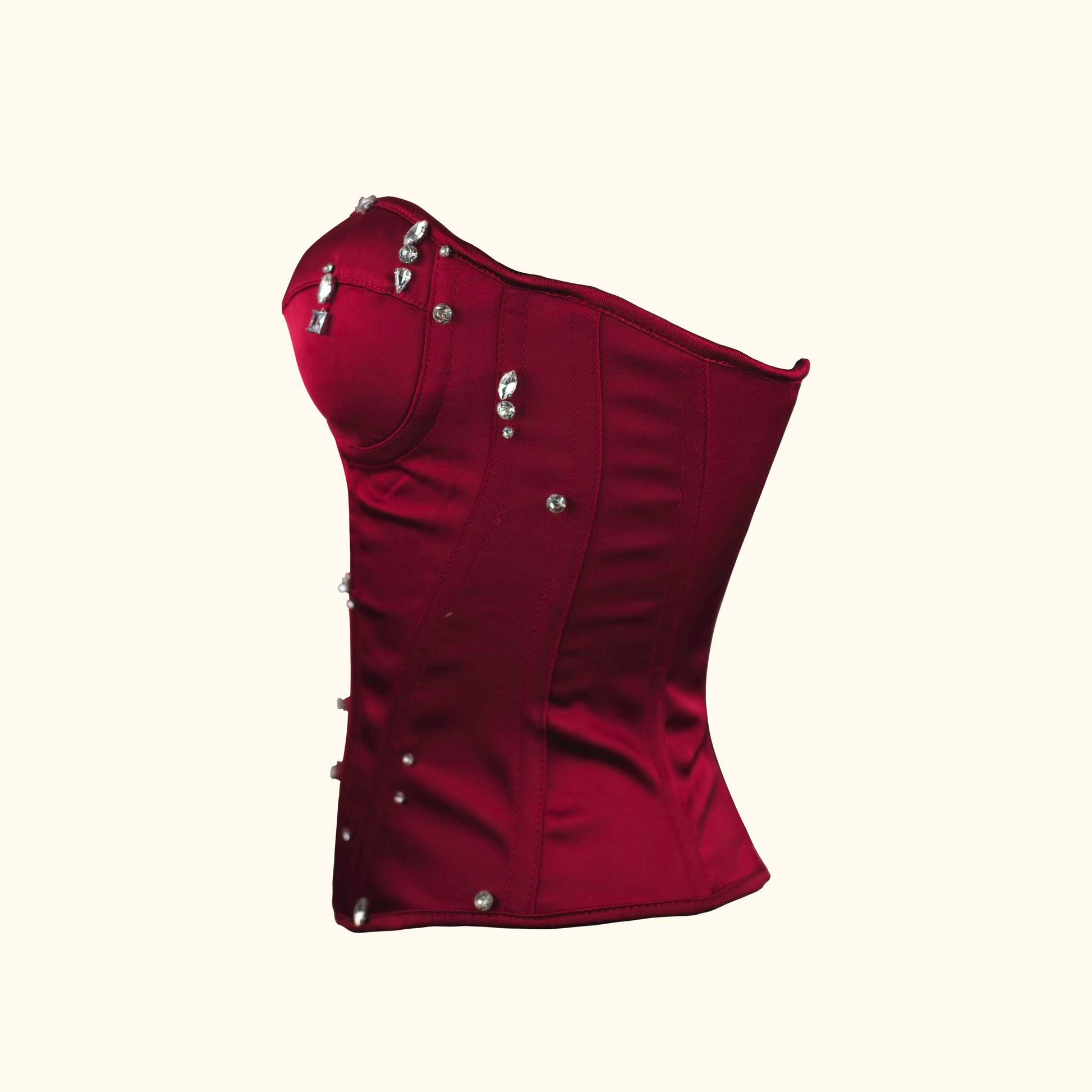 Inspired by dark academia and Gothic romance, this piece features a rich red hue and lavish rhinestone embellishments. It evokes a sense of dramatic, "bloody romance," perfect for creating a standout, alternative look.